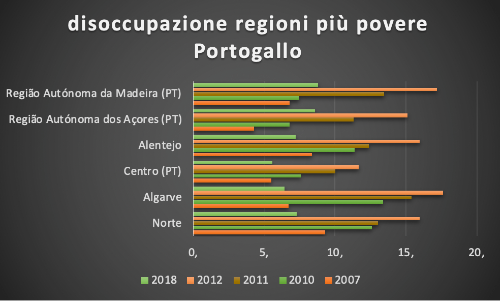 Mentre il Portogallo è riuscito a portare fuori dalla crisi economica anche le aree più deboli del paese, nonostante abbia attraversato attorno al 2012 anni difficili con percentuali di disoccupazione molto elevati.