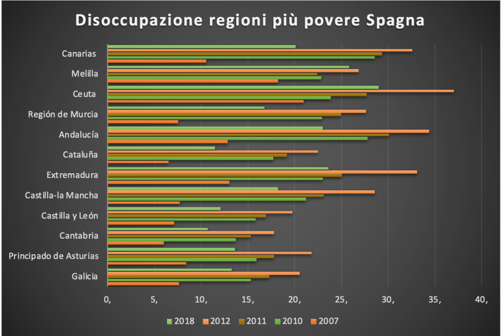 Non è dissimile la situazione nelle regioni più povere della Spagna